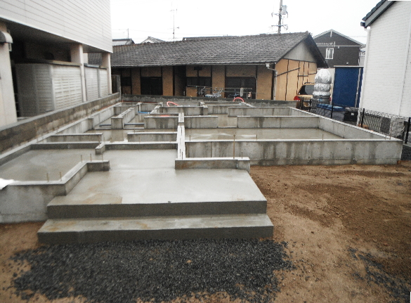 | ショールームにご来店 花園町モデルハウスのご見学 建築のお申込み | 土地売買契約 地盤調査 | 建築請負契約 土地売買決済 | 地盤改良 基礎工事 給排水工事 |
