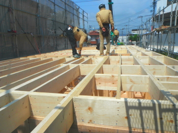 | 土地決定 | モデルハウスご見学 現場見学 土地取得 間取り検討 申込 | 建築請負契約 建築確認申請 | 基礎工事 建て方工事 |