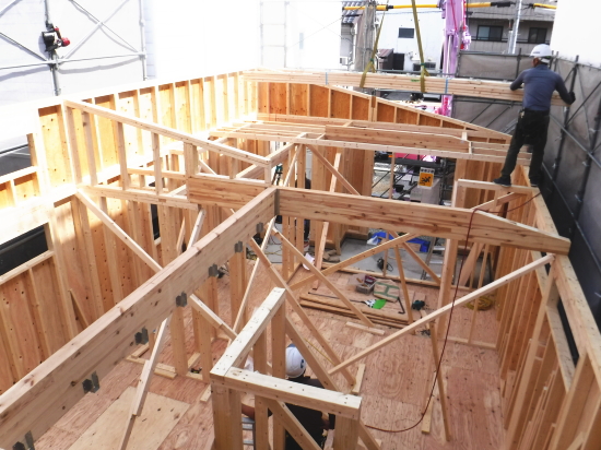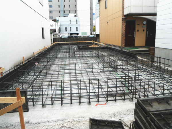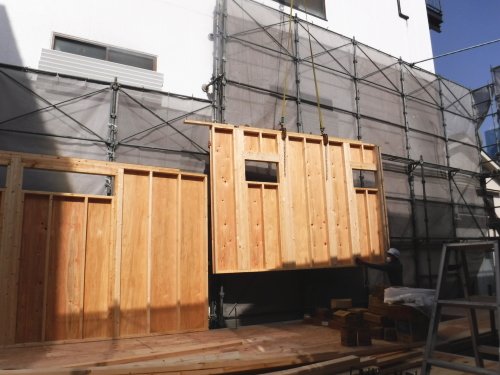 | 隣家の補修工事 | 工事着工 地盤改良工事 基礎工事 基礎鉄筋第三者検査 | 躯体建て方 躯体第三者検査 サッシ(窓・ドア)工事 ユニットバス 屋根工事 外壁工事 | 断熱工事 内部木造作(床・壁下地・収納など) 木枠設置 キッチン設置 |