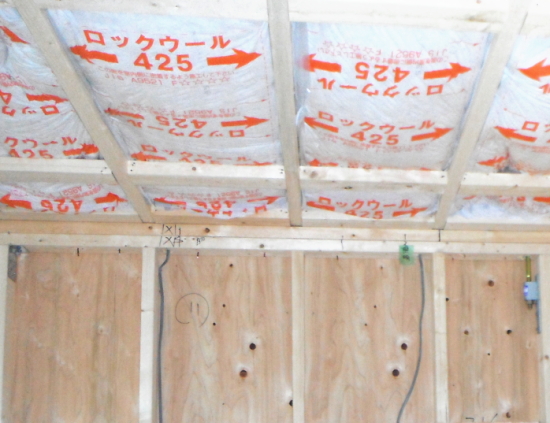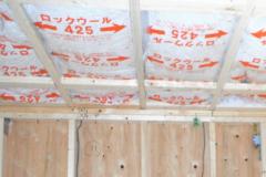 1階天井には、2階からの音を防ぐための、防音材としてロックウールを使用しています。ロックウールは断熱材としての機能も備えています。