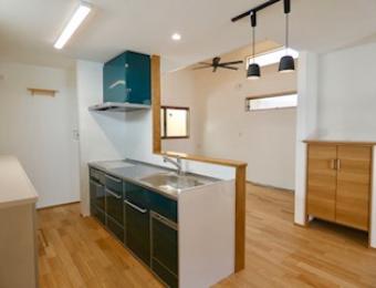 施主様 50代のご夫婦とお子様1人、3人家族の住まい。建て替え工事です。シニア世代の生活を考えて、商店街の実家を建て替えて住む計画です。シニア世代が嬉しいほぼ平屋の家です。