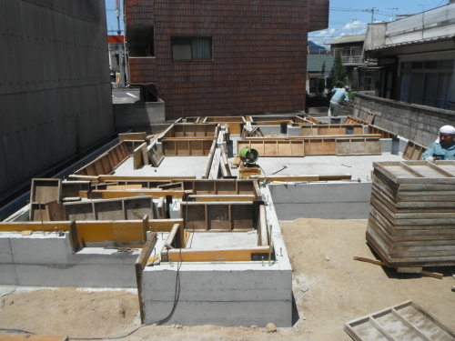 コンクリートを打ち終えたら、コンクリートが硬化するまでそのままで養生をします。