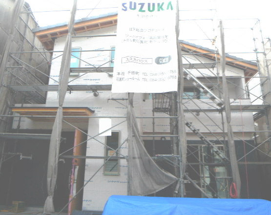 | 地盤調査 建築確認申請 | 地盤改良(柱状改良) 基礎工事 | 木造躯体建て方 屋根工事 外部建具工事 給排水配管工事 電気工事 ユニットバス設置 | 外壁工事 内部造作工事 電気工事 樋工事 |