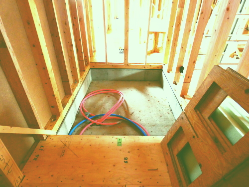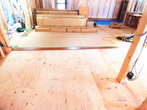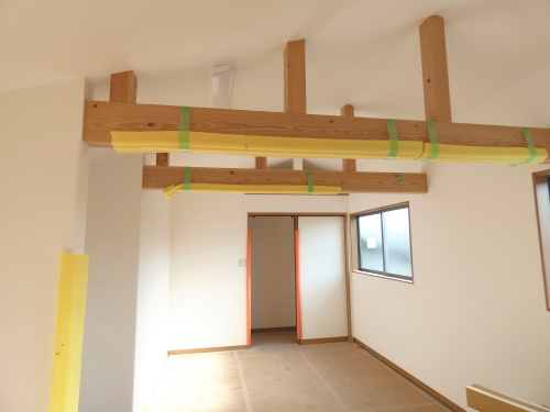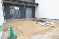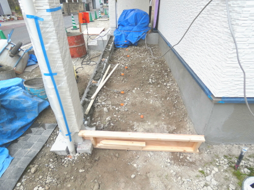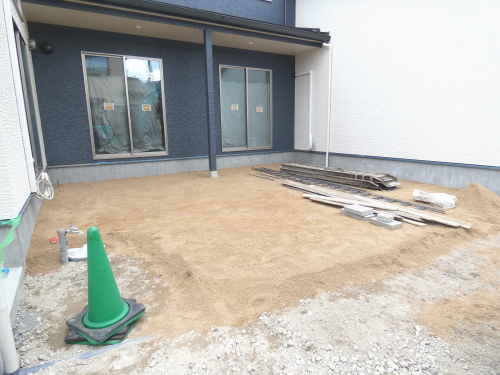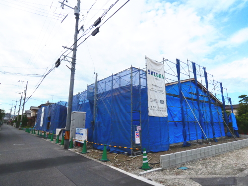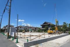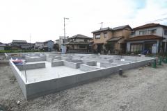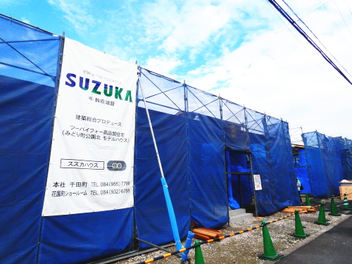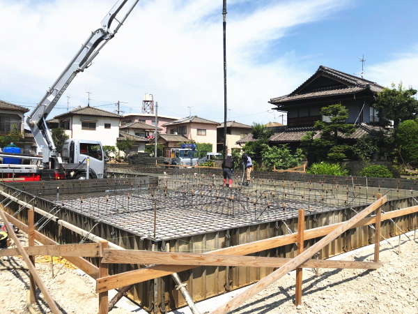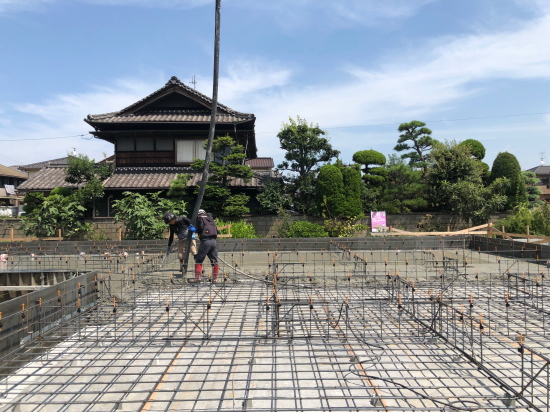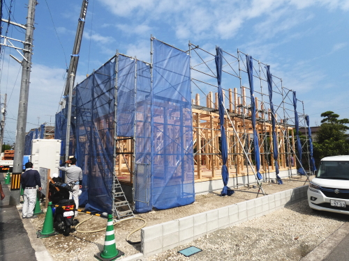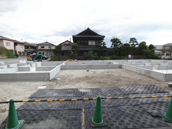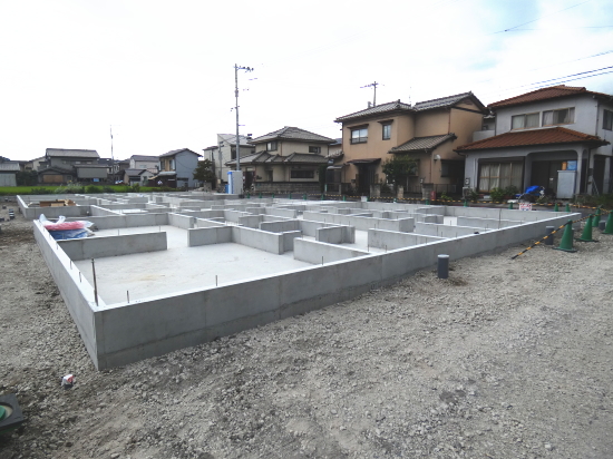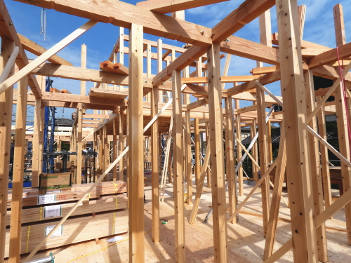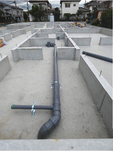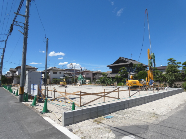 | 造成工事 | 地盤調査 建築確認申請 | 給水排水管接続工事 地盤改良(柱状改良)工事 基礎工事着工 床断熱工事 | 本体木工事着工 棟上げ |