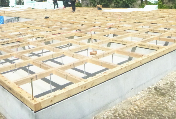 3.ベタ基礎は、建物の荷重をバランスよく地盤に伝えるため地震にも強く、湿気も上がってきません。