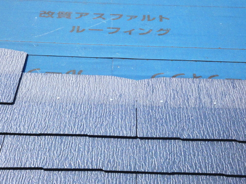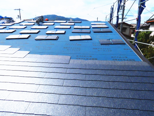屋根は、下地防水のフェルトシートを敷いた上に、KMEWのクアッド(カラーベスト)を使いました。