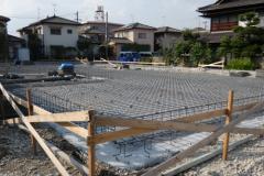 ベタ基礎を打つ前に、栗石を敷き詰めて、その上に、防湿シートを敷き、鉄筋を頑強に結線します。