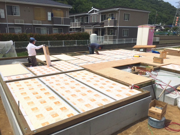 建築地の山手町のエリアが、建築途中に西日本豪雨災害で冠水しましたが、建築GL(基準の高さ)を普通よりも高く設定していたので、不幸中の幸いで床下浸水で被害を抑えることができました。